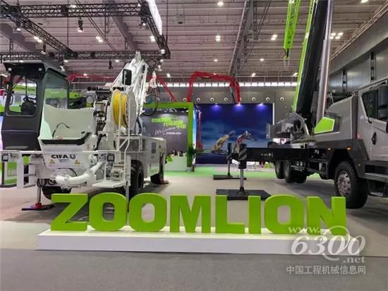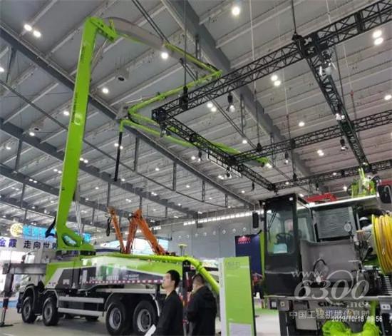 ▲中聯(lián)重科明星產(chǎn)品56米高精高效泵車亮相博覽會