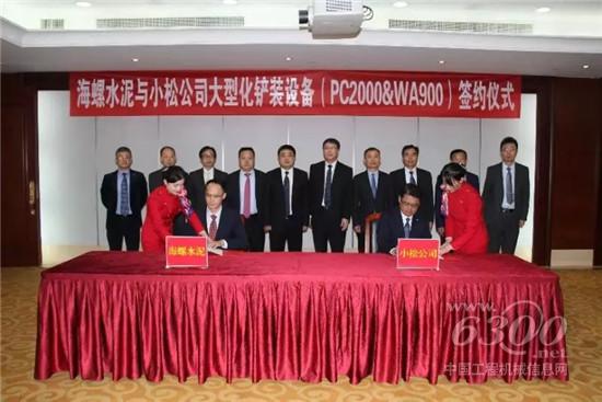 2019年11月6日,小松(中國(guó))投資有限公司(以下簡(jiǎn)稱:小松(中國(guó)))與安徽海螺水泥股份有限公司(以下簡(jiǎn)稱:海螺水泥)礦山大型化鏟裝設(shè)備(PC2000&WA900)簽約儀式在安徽蕪湖海螺國(guó)際大酒店舉行。簽約儀式上,雙方簽訂了4臺(tái)PC2000-8大型液壓挖掘機(jī)和1臺(tái)WA900大型裝載機(jī)的購(gòu)銷合同。海螺水泥副董事長(zhǎng)王建超先生和小松(中國(guó))總經(jīng)理兼CEO張全旺共同出席了簽約儀式。