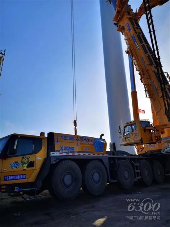 10月21日,中廣核山西省太谷縣范村99.5 MW項(xiàng)目現(xiàn)場(chǎng),全國(guó)首臺(tái)、廣東粵陜電力工程有限公司XCA1200-I全地面起重機(jī)驚艷首秀。跨度16m,78.5m主桿加上25.5m風(fēng)電臂,此工況下,XCA1200_I輕松將103t機(jī)艙起吊至 90m處高度,順利完成國(guó)內(nèi)2.2MW風(fēng)機(jī)首次整體吊裝,并以一天半一臺(tái)的安裝速度刷新著現(xiàn)場(chǎng)工作人員的計(jì)劃表。