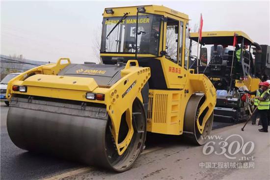 寶馬格BF800C攤鋪機(jī)、BW27RH膠輪壓路機(jī)、BW203AD-4AM雙鋼輪壓路機(jī)在陜西藍(lán)田312國道現(xiàn)場施工視頻。