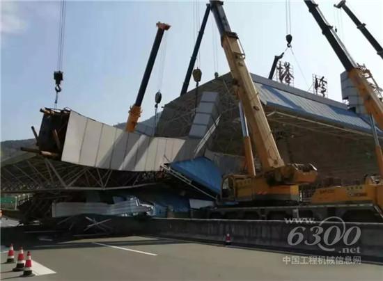 11月6日凌晨4點,天剛蒙蒙亮。G56杭瑞高速景婺黃段,一陣陣“隆隆隆……”的機(jī)器轟鳴聲悄然響起。現(xiàn)場,包含QY25K5A、QY70KC、QY40KC、XCT80L6、XCT110、XCA300等型號在內(nèi)的8臺徐工起重機(jī)依次排布,正式開啟江西境內(nèi)“最難拆”的贛皖省界塔嶺收費站拆除工作。