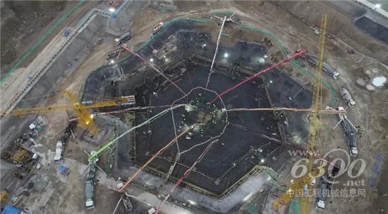 據(jù)了解,該塔樓筏板呈階梯型,鋼筋量高達(dá)1800余噸,鋼筋支架超過230余噸,澆筑體量達(dá)21000立方米,主要混凝土強(qiáng)度等級(jí)有C40P10、C45P10、C60P10、C80,對(duì)施工的連續(xù)性和精準(zhǔn)性有相當(dāng)高的要求。為確保此次混凝土順利澆筑,以中聯(lián)重科為代表的工程機(jī)械企業(yè)傾力支持,項(xiàng)目全程共配備了108輛攪拌車,9臺(tái)泵車以及1臺(tái)車載泵,24小時(shí)無間斷供砼作業(yè)。在施工高峰期,中聯(lián)重科同時(shí)派出了6臺(tái)泵車,1臺(tái)超高壓車載泵及50臺(tái)攪拌車出戰(zhàn),其中4.0系列攪拌車就超過30臺(tái)。穩(wěn)如磐石的持續(xù)作戰(zhàn)將預(yù)計(jì)澆筑完工時(shí)間提前了10個(gè)小時(shí)。