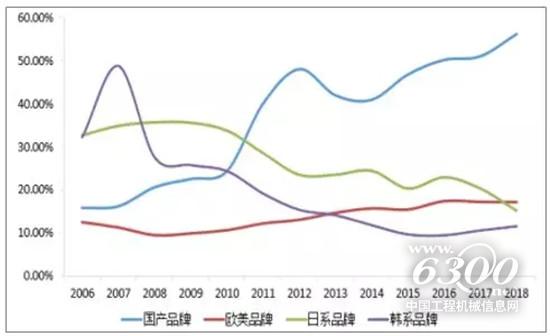 2006-2018年挖機(jī)行業(yè)國(guó)產(chǎn)品牌份額提升
