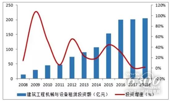 國(guó)內(nèi)建筑工程機(jī)械與設(shè)備租賃行業(yè)發(fā)展較晚,但投資規(guī)模一直逐步增大。