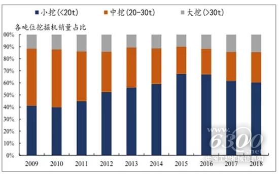 中大挖比重持續(xù)提升,表明基建和礦山需求占比提升