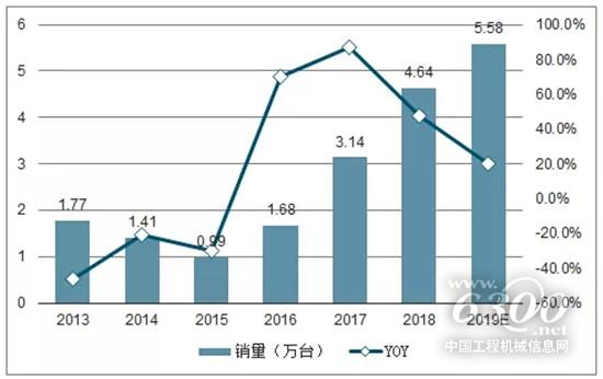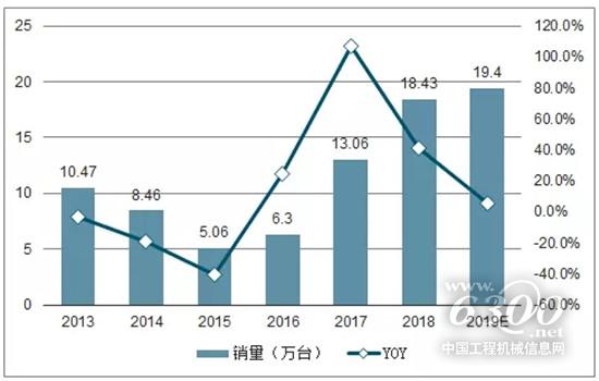 2013-2019年國(guó)內(nèi)挖機(jī)銷量及增速預(yù)測(cè)