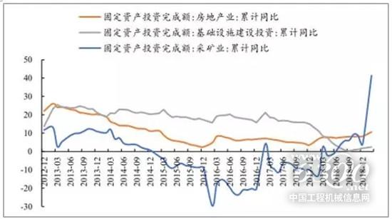 從2017年固定資產(chǎn)投資額結(jié)構(gòu)看,基建、地產(chǎn)、礦山占比分別為27.4%、22.1%和1.5%。2019年1-2月,固定資產(chǎn)投資完成額同比增長(zhǎng)6.1%,較18年提升0.2pct,其中基建、地產(chǎn)和礦山開(kāi)采投資額同比分別增長(zhǎng)2.5%、10.6%和41.4%,較18年分別提升0.7pct、2.3pct和37.3pct。