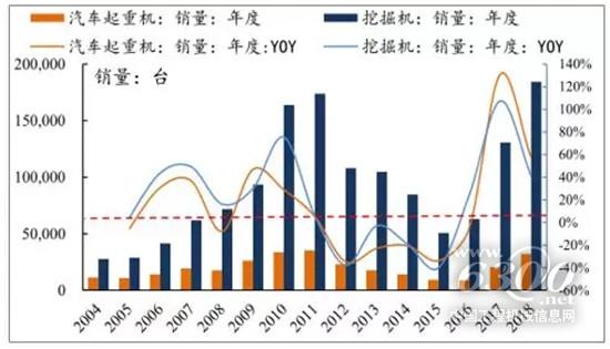 挖機(jī)和起重機(jī)歷史銷量高度相關(guān)