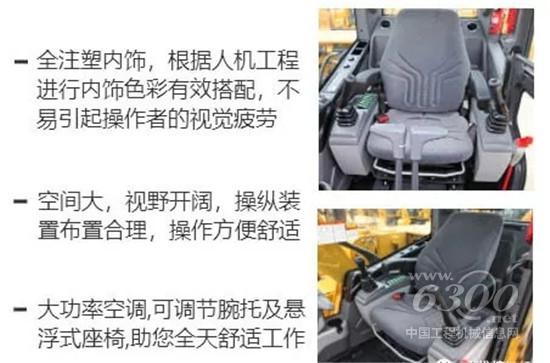 全注塑內(nèi)飾,根據(jù)人機(jī)工程進(jìn)行內(nèi)飾色彩有效搭配,不易引起操作者的視覺(jué)疲勞;空間大,視野開(kāi)闊,操縱裝置布置合理,操作方便舒適;采用大功率空調(diào),可調(diào)節(jié)腕托及懸浮式座椅,助您全天舒適工作。