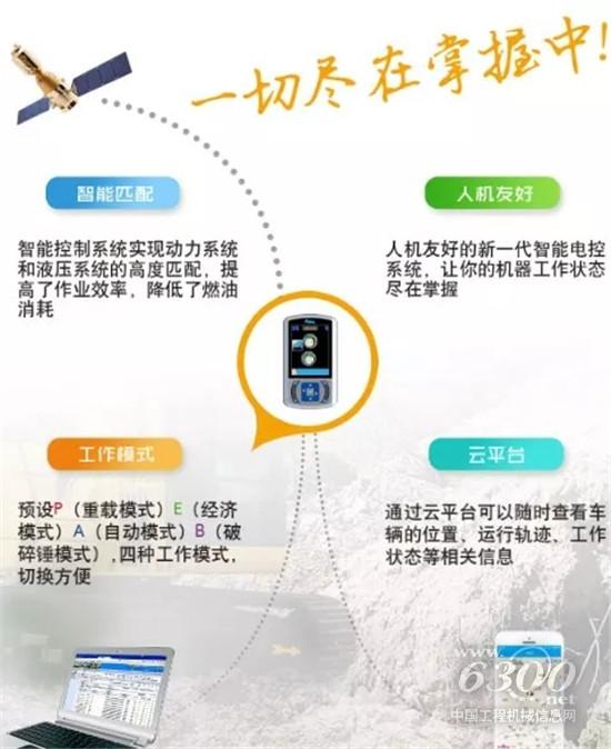 智能控制系統(tǒng)實(shí)現(xiàn)動(dòng)力系統(tǒng)和液壓系統(tǒng)的最佳匹配,提高了作業(yè)效率,降低了燃油消耗;人機(jī)友好的新一代智能電控系統(tǒng),讓你的機(jī)器工作狀態(tài)盡在掌握;預(yù)設(shè)多種工作模式,切換方便;通過(guò)云平臺(tái)可以隨時(shí)查看車(chē)輛位置、運(yùn)行軌跡、工作狀態(tài)等相關(guān)信息。