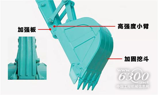 ●大小臂使用加強(qiáng)版構(gòu)造,牢固又可靠;斗型開口寬,斗齒大。