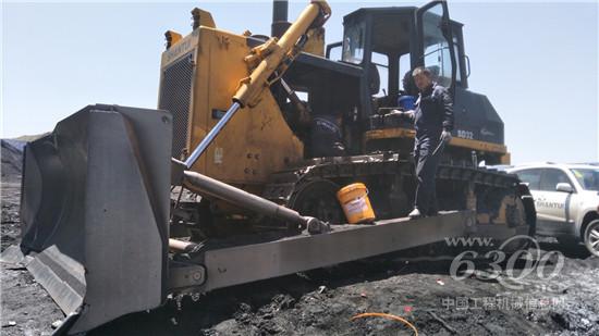 ?山推服務(wù)人員正在給設(shè)備做保養(yǎng)