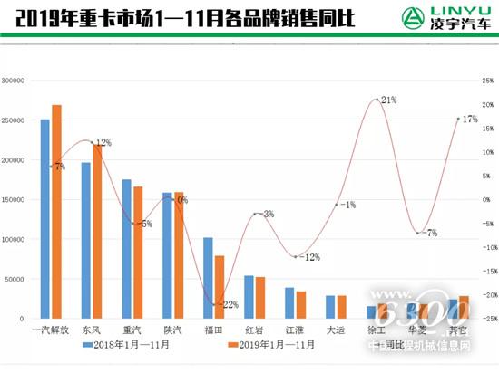 11月份過去后,今年1-11月的重卡市場累計銷量達到107.44萬輛,比上年同期的106.53萬輛小幅增長1%。如果不出意外,2019年全年重卡市場的整體銷量將超過115萬輛,從而刷新我國重卡行業(yè)年銷量的新紀錄。