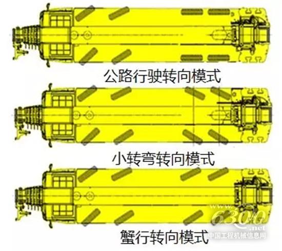 受場地限制,長期在狹窄作業(yè)環(huán)境施工時,可以選擇全輪轉(zhuǎn)向車型。獨創(chuàng)缸控多模式隨動轉(zhuǎn)向系統(tǒng),四橋轉(zhuǎn)向,最小轉(zhuǎn)彎直徑20m,比行業(yè)同噸級產(chǎn)品小4m??蓪崿F(xiàn)后輪鎖止、全輪轉(zhuǎn)向、蟹行三種轉(zhuǎn)向模式,保證整車高速行駛穩(wěn)定可靠,低速行駛機動靈活。避免鉸點間隙及拉桿變形累積導致的轉(zhuǎn)角誤差,降低燃油消耗及輪胎磨損,節(jié)能高效,雙管齊下。長期在坑洼地面施工時,可以選擇雙前橋轉(zhuǎn)向,后橋雙胎配置車型。接地面積更大,帶載行駛能力更強,效率更高,通過性更強,輪胎不易陷入。