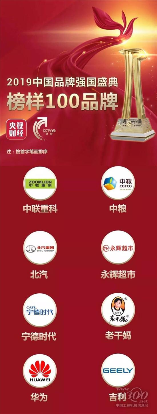 ▲中聯(lián)重科入選“2019中國品牌強國盛典榜樣100品牌”