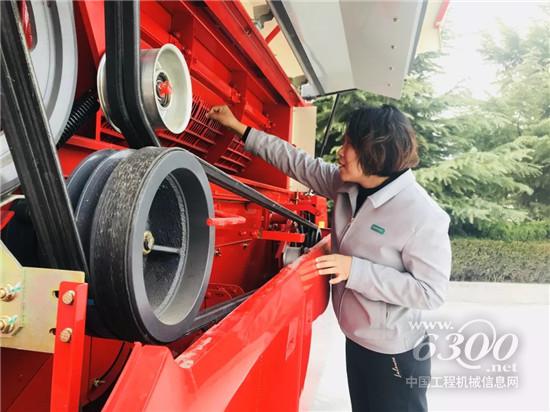 朱曉巖在檢查水稻機(jī)的脫粒清選設(shè)備