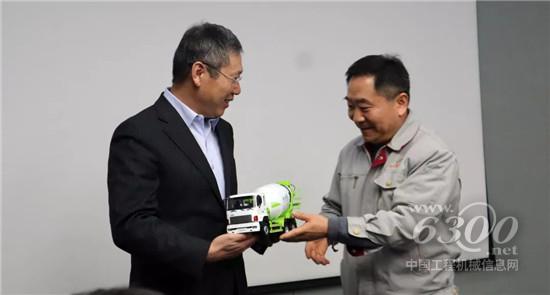 最后,中集凌宇總經(jīng)理劉寶山向一汽解放董事長(zhǎng)胡漢杰贈(zèng)送了凌宇攪拌車(chē)模型。