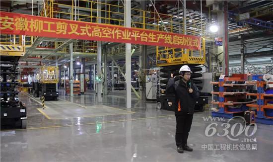 安徽柳工董事長余亞軍先生帶領管理團隊按下了“啟動”鍵,標志著安徽柳工自行剪叉式裝配生產(chǎn)線正式投產(chǎn)。