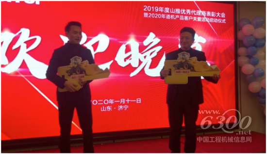 近日,在2020年山推道機(jī)產(chǎn)品客戶關(guān)愛活動(dòng)啟動(dòng)儀式相關(guān)活動(dòng)中,山推四川客戶汪老板、陜西客戶侯老板在砸金蛋的抽獎(jiǎng)環(huán)節(jié)中一舉斬獲山推裝載機(jī)大獎(jiǎng)!山推股份總經(jīng)理張民親自交付鑰匙,并與獲獎(jiǎng)嘉賓合影留念。