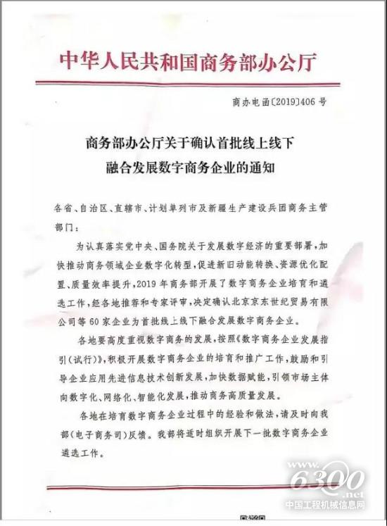 近日,國家商務(wù)部公布了全國首批線上線下融合發(fā)展數(shù)字商務(wù)企業(yè)名單,助力加快推動商務(wù)領(lǐng)域企業(yè)數(shù)字化轉(zhuǎn)型,江蘇徐工電子商務(wù)股份有限公司與阿里巴巴、京東、小米、蘇寧等60家企業(yè)一道入選首批線上線下融合發(fā)展數(shù)字商務(wù)企業(yè)。