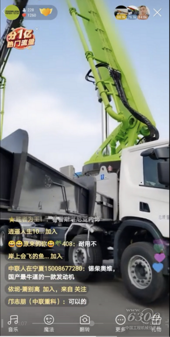 ▲中聯(lián)重科通過快手線上直播推廣混凝土泵車產(chǎn)品