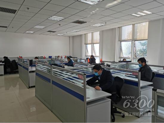 ▲中聯(lián)重科工程起重機(jī)械分公司員工在消毒后的辦公室工作