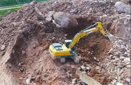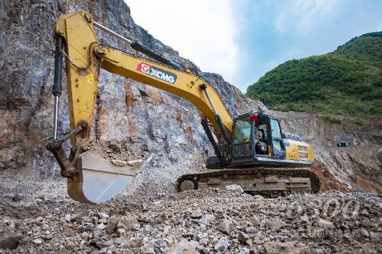 在廣東惠州,群山環(huán)繞中,幾臺徐工XE370DK挖掘機和幾名工人正在緊張而忙碌的進行著礦山開采工作?;葜莸V山以火山巖為主,這種巖石被廣泛應用于建筑、水利等領(lǐng)域,在各行各業(yè)中起著無法替代的作用。然而火山巖質(zhì)量輕、硬度高,開采難度巨大。面對惡劣工況,“靠譜”的徐工挖掘機成了當?shù)氐V山開采的首選品牌。