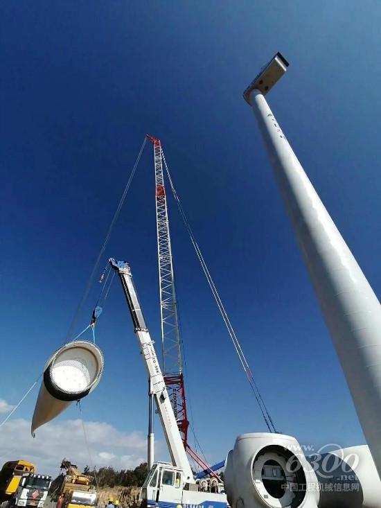 此次吊裝的機(jī)型單機(jī)容量3.3兆瓦,輪轂中心高度達(dá)100米,葉輪直徑達(dá)146米,掃風(fēng)面積16700余平方米,主臂102m米,固定副臂7米;吊鉤最大起升高度可達(dá)106米,最大起重量140噸。隨著#41風(fēng)機(jī)葉輪緩緩上升與機(jī)艙傳動(dòng)鏈合攏,標(biāo)志著西南地區(qū)最大單機(jī)容量為3.3兆瓦的首臺(tái)風(fēng)機(jī)吊裝成功,開(kāi)創(chuàng)了國(guó)內(nèi)100米以上輪轂高度分體吊裝風(fēng)機(jī)的先河。該風(fēng)機(jī)的成功吊裝再次體現(xiàn)了中聯(lián)產(chǎn)品適應(yīng)于山地風(fēng)電的優(yōu)勢(shì)。