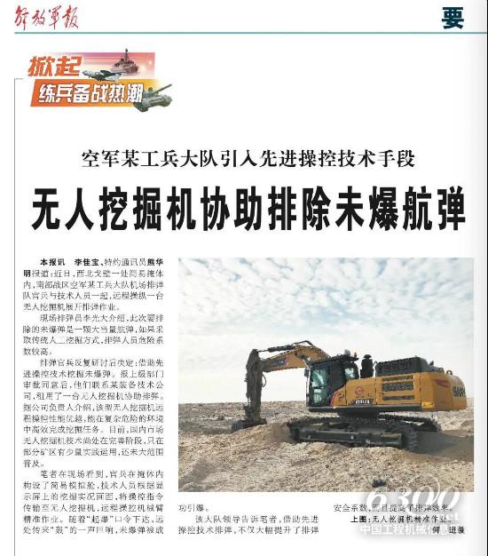 近期,《解放軍報》報道了此事。文章稱,“空軍某工兵大隊引入先進操控技術手段,無人挖掘機協(xié)助排除未爆航彈”,在業(yè)界引發(fā)關注。