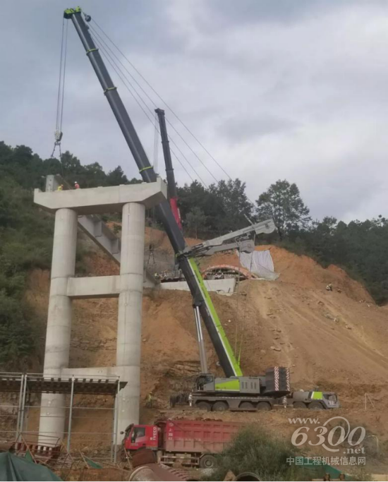 土鍋寨大橋是廣那高速項目的重點控制性工程之一,為圓滿完成目標任務(wù),該項目主要承建方云南建設(shè)基礎(chǔ)設(shè)施投資股份有限公司主要領(lǐng)導(dǎo)高度重視,經(jīng)過前期的多方考察與嚴格篩選,最終選定性能優(yōu)越的中聯(lián)重科起重機設(shè)備——大噸位全新產(chǎn)品ZAT4000參與廣那高速的建設(shè)。為保證汽車吊架設(shè)預(yù)制T梁的施工安全,首次吊架前項目承建方特邀請了橋梁專家對預(yù)制T梁架設(shè)專項施工方案進行了評審及現(xiàn)場踏勘。在制定切實可行的安全質(zhì)量保證措施后,我司ZAT4000全地面起重機設(shè)備完成了T梁的首次成功試吊。
