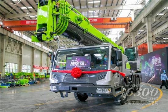 ▲中聯(lián)重科下線全球首臺(tái)純電動(dòng)汽車起重機(jī)