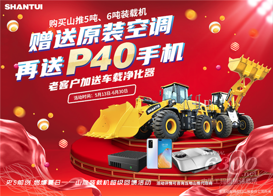 凡5月13日至6月30日購山推5噸、6噸裝載機(jī)的客戶朋友,除贈送設(shè)備原裝空調(diào)外,再加送華為P40手機(jī)1部,已經(jīng)擁有山推設(shè)備的老客戶朋友們還可享有特殊福利:在享有上述優(yōu)惠的基礎(chǔ)上,再獲山推股份加送的車載凈化器1臺。