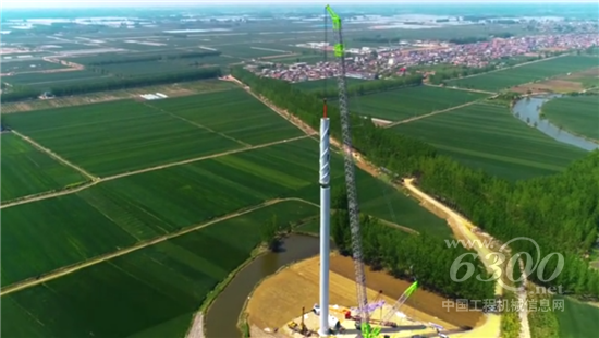 2020年4月26日,由大型國企中電建江西省電力建設有限公司機械(風電)工程公司承建的江蘇徐州新沂市阿湖鎮(zhèn)一期90MW風電項目工程首臺風機塔筒吊裝成功。這是中國電建與中聯(lián)重科再次強強合作的典范,尤其是在大噸位的起重設備上毫不猶豫的選擇ZCC9800W履帶吊!