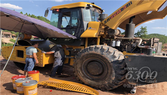 烈日炎炎,在成都一處工地上,3臺山推SR26-3壓路機正在同時施工;施工間隙山推服務(wù)人員對設(shè)備進行了免費巡檢維護,對現(xiàn)場工作人員詳細(xì)詢問設(shè)備使用情況并解答他們的問題。