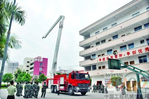 中聯(lián)32米舉高噴射消防車,是百色市歷史上第一輛舉高噴射消防車