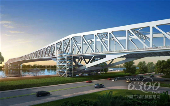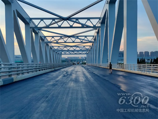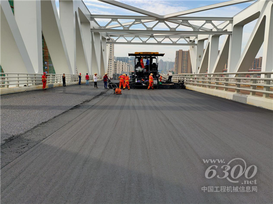 山推攤鋪機(jī)大橋鋪設(shè)現(xiàn)場