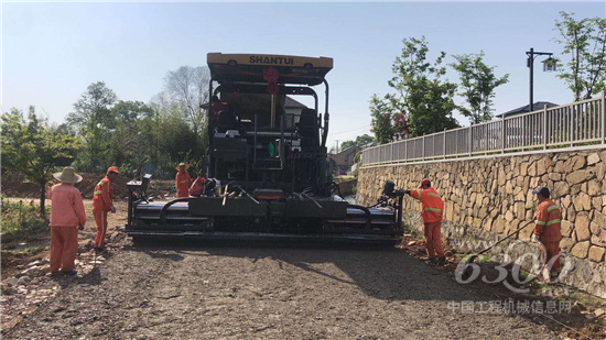 余總所在的公司,三月份中標了雙溪鎮(zhèn)竹海景區(qū)和徑山鎮(zhèn)徑山景區(qū)的道路施工。這些景區(qū)位于丘陵中,進入景區(qū)道路需要先做水穩(wěn)料攤鋪,再做瀝青攤鋪。余總剛開始抱著試試的心理,租賃了一臺山推90S多功能攤鋪機做雙溪竹海景區(qū)道路的瀝青攤鋪。沒想到,瀝青攤鋪效果很好。