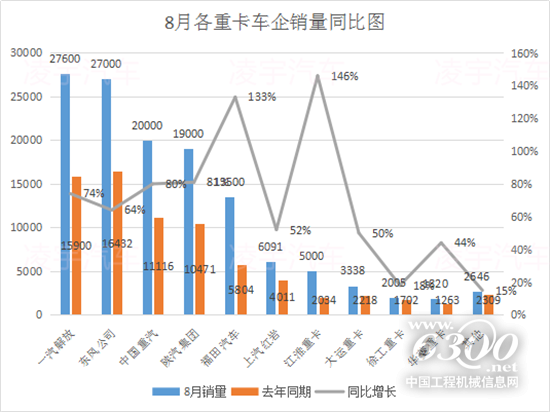 8月份重卡市場(chǎng)整體銷(xiāo)量持續(xù)增長(zhǎng),那各大主流車(chē)企的銷(xiāo)量情況又是什么樣的呢?
