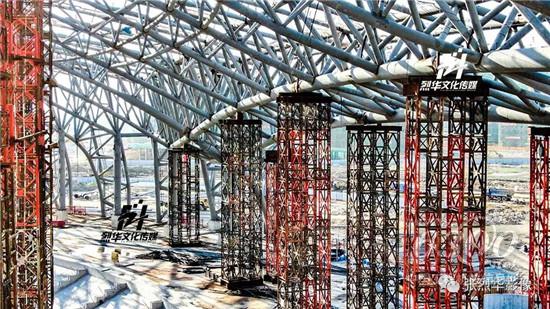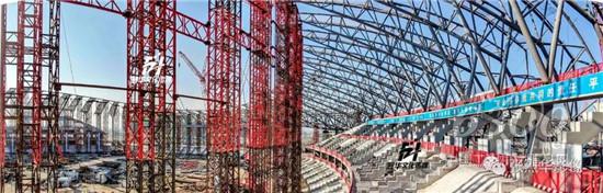 目前,“一場兩館”(體育場、體育館、訓(xùn)練館)二次結(jié)構(gòu)砌體任務(wù)完成80%,室內(nèi)精裝修工作正大面積推進(jìn),金屬屋面拼接安裝工作即將啟動,“飛舞的浪花”造型雛形已現(xiàn),預(yù)制看臺也開始吊裝,訓(xùn)練場和會議中心主體結(jié)構(gòu)施工接近尾聲,室外工程正同步推進(jìn)。