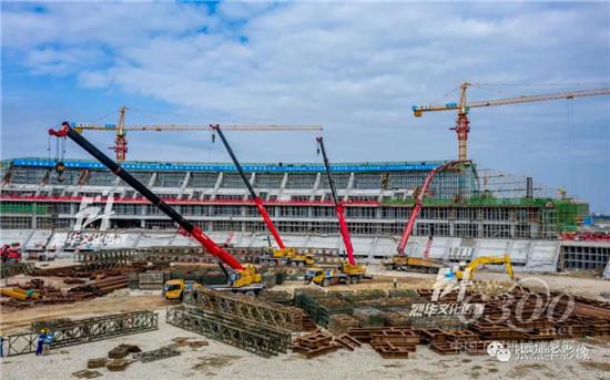 亞青會(huì)體育場(chǎng)館封頂、鋼結(jié)構(gòu)首吊成功。