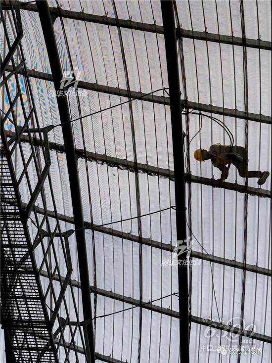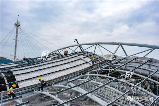 汕頭游泳跳水館屋頂,經(jīng)過(guò)近20年的日曬風(fēng)吹,其金屬屋面構(gòu)造層部分檀條防腐涂層存在開裂、脫落和銹蝕的現(xiàn)象,屋蓋金屬面板、保溫材料、防水材料、金屬穿孔底板、玻璃天窗及其托架也因年久而老化,無(wú)法滿足相關(guān)體育賽事的需求。中建八局在保留原有設(shè)計(jì)外觀的基礎(chǔ)上進(jìn)行改造升級(jí)。游泳跳水館作為我市標(biāo)志性建筑之一,其“貝殼臥灘、風(fēng)帆臨?!钡木涝煨驮⒁馍铋L(zhǎng),遠(yuǎn)遠(yuǎn)望去,它像一艘鼓滿風(fēng)帆的航船停泊在充滿生機(jī)的海灣,整個(gè)建筑蘊(yùn)含極高的科技含量及設(shè)計(jì)匠心,屋頂拆除工作計(jì)劃在本月內(nèi)完成。