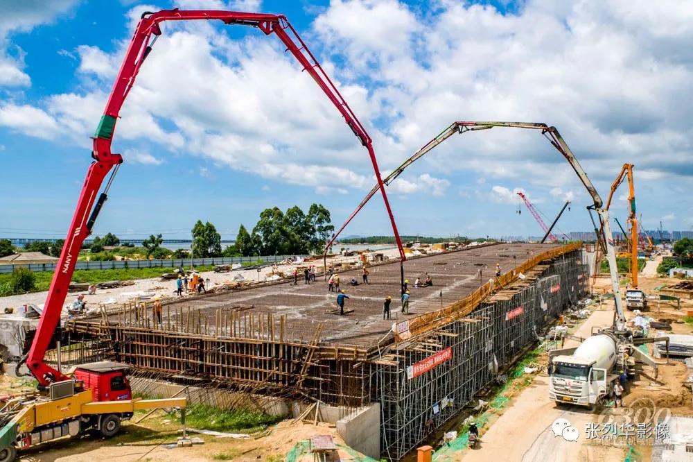 工程進(jìn)度明顯加快,中山東路項(xiàng)目9號(hào)主墩全部12根樁頭順利鑿除;10號(hào)主墩承臺(tái)完成混凝土澆注;連續(xù)梁完成澆注,總計(jì)1953立方米混凝土,6月份施工節(jié)點(diǎn)圓滿完成。目前,中砂大橋樁基基本完成,正在進(jìn)行水中鋼板樁圍堰施工。如今施工人員24小時(shí)晝夜不停歇,向著下一個(gè)目標(biāo)奮進(jìn),確保中砂特大橋在2021年亞青會(huì)開(kāi)幕前建成通車。中砂特大橋全長(zhǎng)1325米,主跨180米的雙塔中央雙索面斜拉橋,下塔柱為鋼筋混凝土結(jié)構(gòu),高19.9米,上塔柱為鋼結(jié)構(gòu),高65.2米,宏偉壯觀。