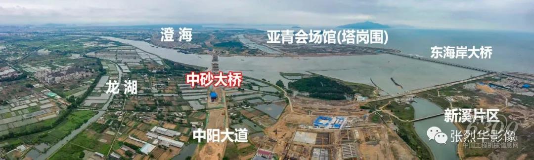 中砂大橋?yàn)l臨外砂河出??冢嚯x東海岸大橋上千米,遙相對(duì)望,雙橋爭(zhēng)暉,堪稱姐妹橋。明年亞青會(huì)開(kāi)幕前夕、中砂大橋通車之際,航拍下的姐妹橋一定很美很壯觀,無(wú)論汽車行走在東海岸大橋或中砂大橋上,兩橋之美盡收眼底,你看著我、我看著你,相互欣賞,看誰(shuí)更美?中砂大橋是聯(lián)結(jié)龍湖和澄海的橋梁紐帶,也是通往亞青會(huì)體育場(chǎng)館的景觀大橋。