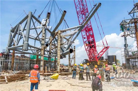 中建八局亞青會體育場館的建設(shè)者們經(jīng)過連續(xù)10小時(shí)緊張有序的作業(yè),當(dāng)晚9時(shí)許,首節(jié)拱桁成功吊裝到30多米高的指定作業(yè)位置。亞青會場館將于10月份開始施工室外園林,包括二期主體工程的封頂,后面緊接著二段施工精裝修和體育工藝的施工,全部工程預(yù)計(jì)于明年5月份完成。