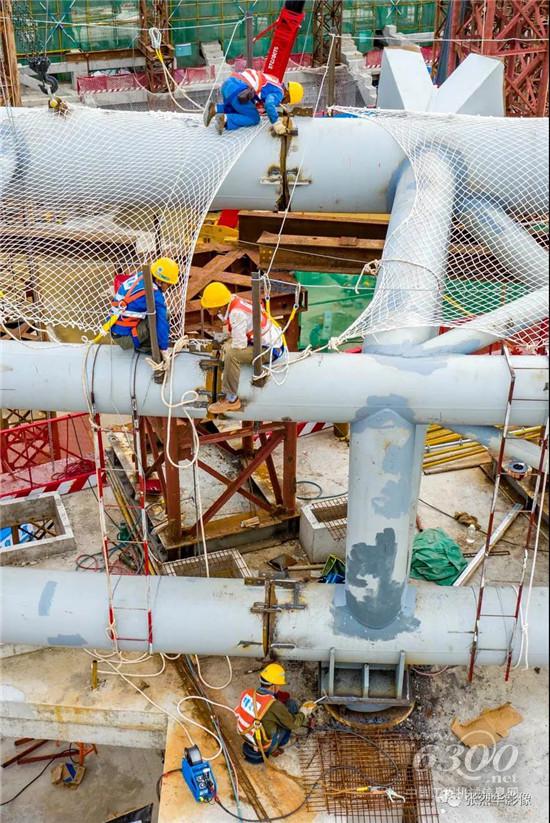 巨型拱桁架是亞青會體育場一萬多個(gè)鋼結(jié)構(gòu)管件當(dāng)中長度最長、重量最重、安裝難度最大的,最具挑戰(zhàn)性的施工。為確保場館能夠如期交付,項(xiàng)目通過“兩班倒”的模式進(jìn)行不間斷的鋼結(jié)構(gòu)施工,讓主場館的整體桁架在8月10日前全部完成,接著進(jìn)行金屬屋面和室內(nèi)精裝修工作,為場館披上“新衣”。