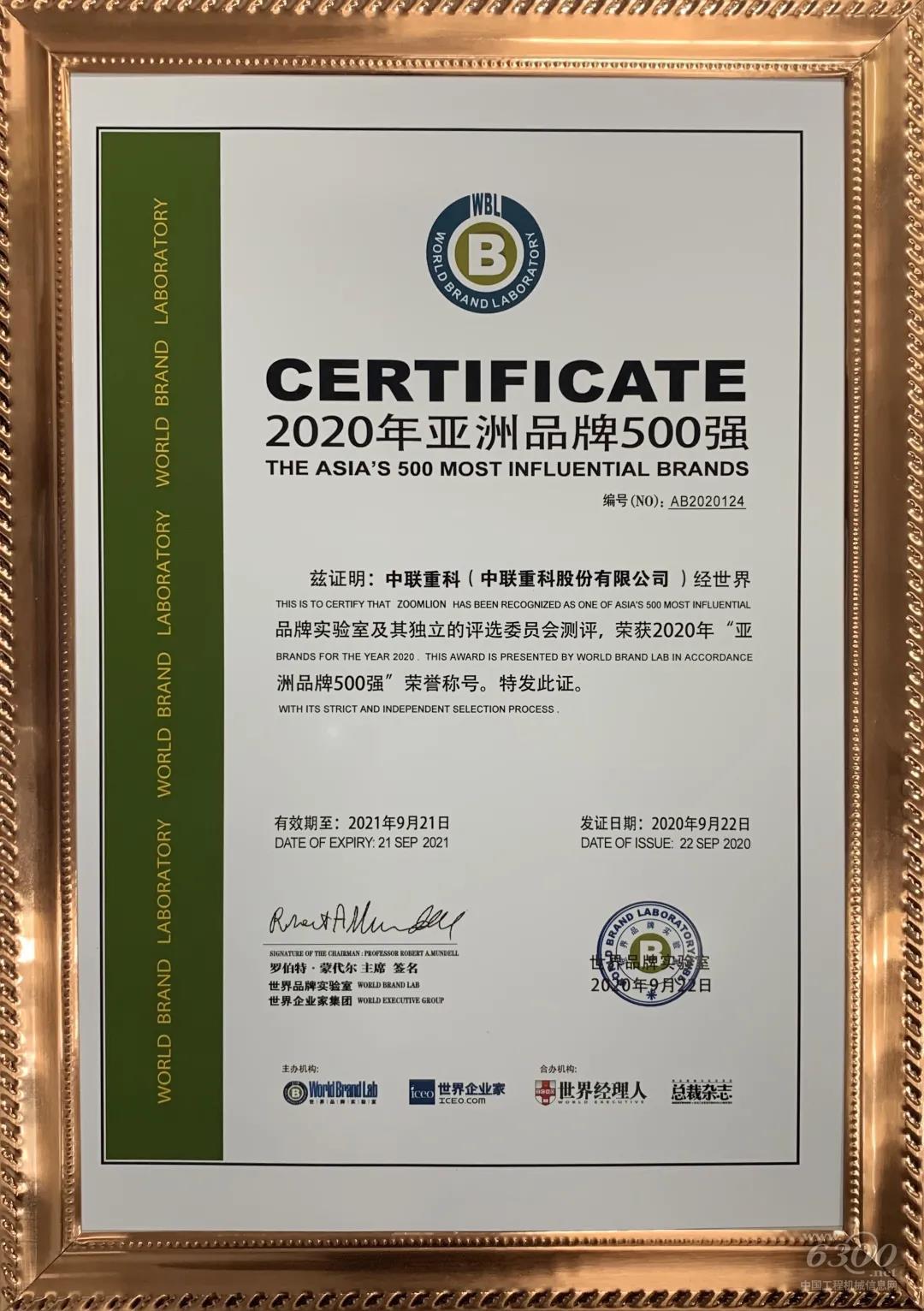 ▲中聯(lián)重科連續(xù)15年入榜《亞洲品牌500強(qiáng)》