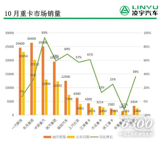陜汽集團(tuán)一月至十月累計(jì)銷售重卡19.04萬(wàn)輛,同比增長(zhǎng)32%,市場(chǎng)占有率為13.9%;
