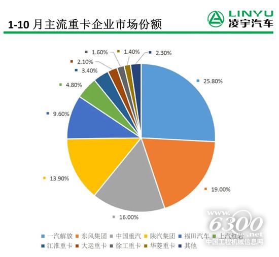 一汽解放10月依然穩(wěn)中有進(jìn),累計(jì)銷售重卡2.46萬(wàn)輛,比上年同期增長(zhǎng)約7%,市場(chǎng)占有率為25.8%。