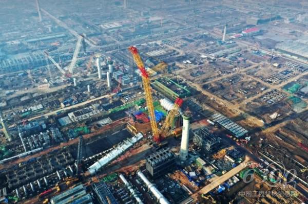 12月22日,在連云港盛虹煉化一體化項目中,徐工XGC88000三號車圓滿完成亞洲單系列年處理原油能力最大的同類裝置的核心裝備——盛虹煉化1600萬噸/年常壓塔首吊重任。