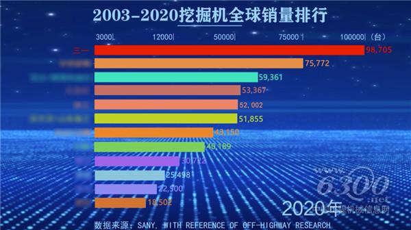 2018年,三一挖掘機(jī)銷量躋身全球第四;2019年成為全球第二;2020年,三一挖掘機(jī)全球銷量98705臺,占據(jù)全球挖掘機(jī)市場15%的份額,成功登頂!